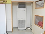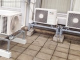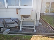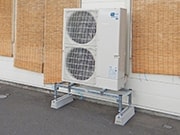 - 室外機は地面の床へプラスチックブロックを使用し設置