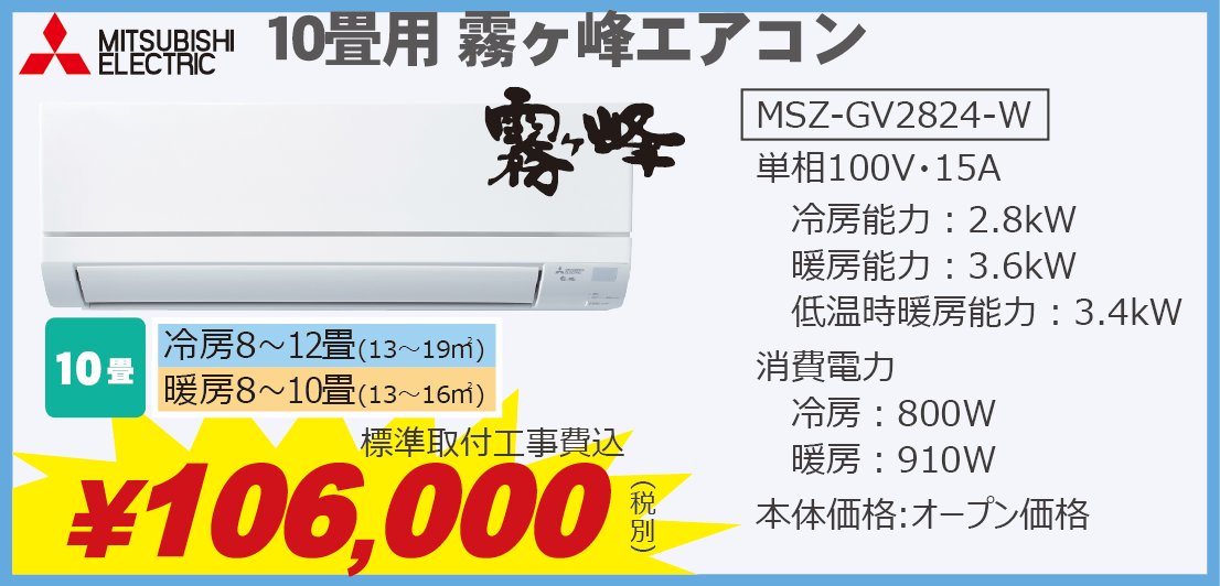 - 冷媒配管4mまで(室内機と室外機を繋ぐ配管)