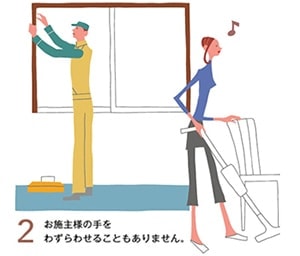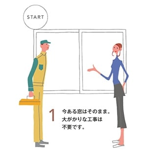 今ある窓の内側に窓枠を取り付けるだけだから、一窓あたり約1時間。家一棟でも1日で工事完了。