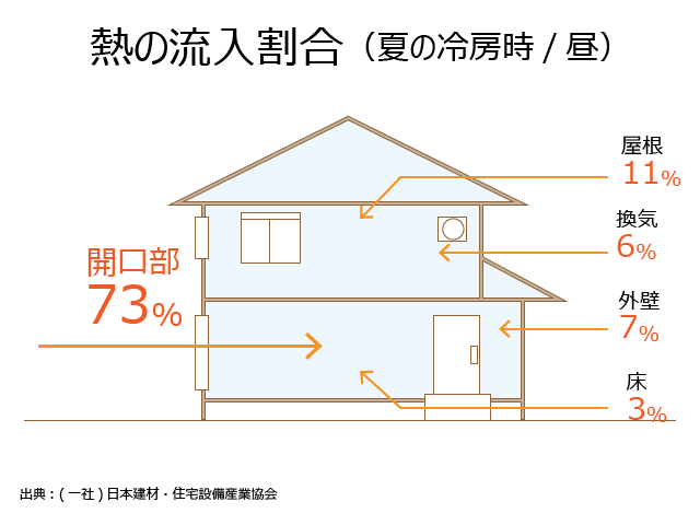 家の中で熱の出入りが最も大きいのが、窓などの開口部です。