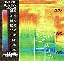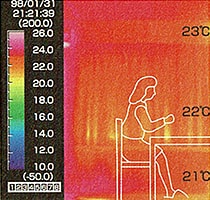 天井と床部分の温度差が大きく、すきま風のため足元に冷気がたまっています(冬期暖房時)。