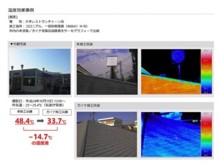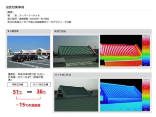 ガイナを建物の屋根、外壁に塗るだけで、太陽光線から受ける影響の約90%を反射し、夏に涼しい究極の外断熱が完成します。