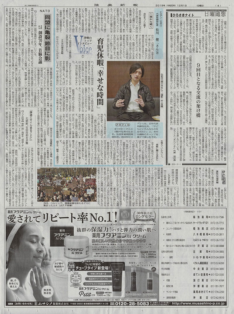 12月1日付陸奥新報「Voice~津軽のトップインタビュー」