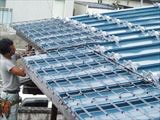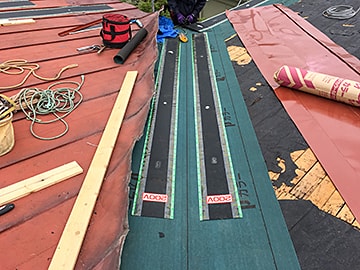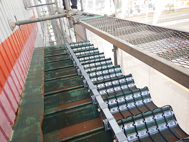 折板屋根の上にヒーターを設置する工法