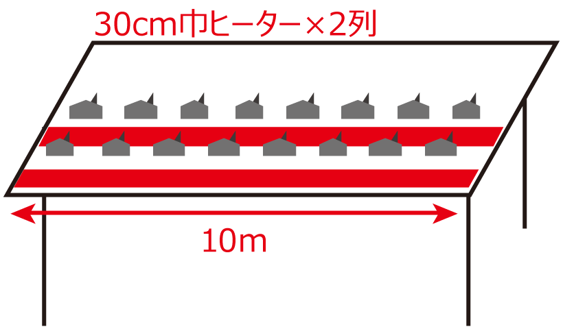 ヒーター2段設置(軒先と奥側へ)