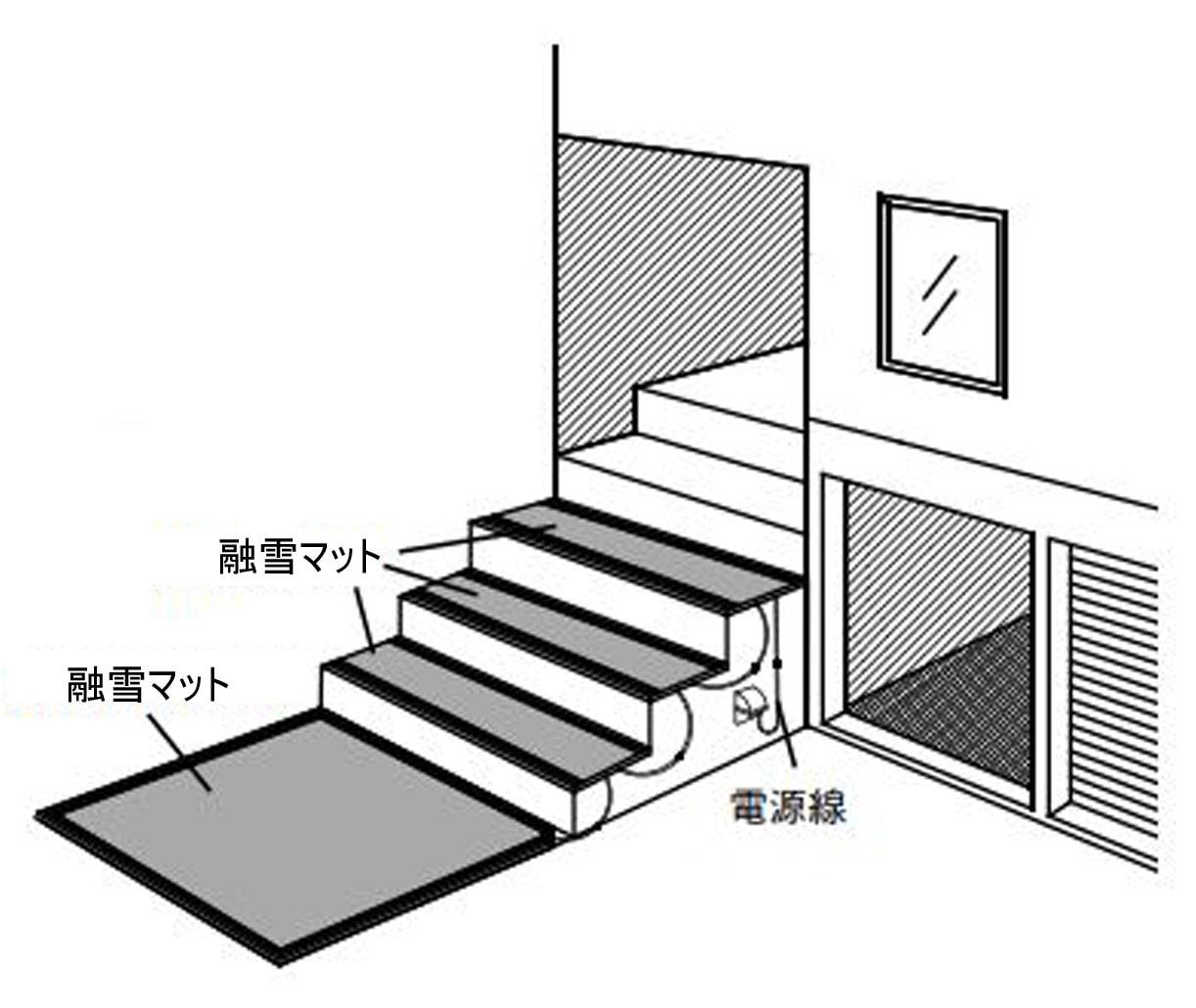 玄関前や滑りやすい階段の雪を溶かし、凍結を防ぎます。