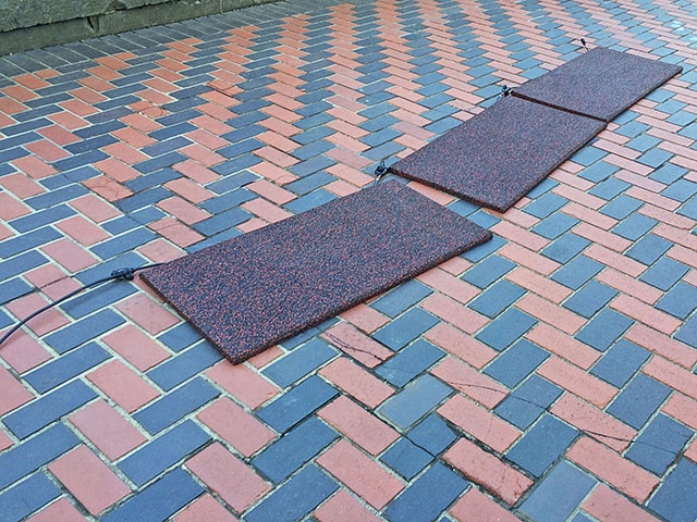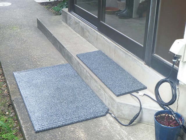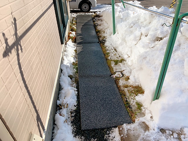 融雪用マットを敷き、コンセントにつなぐだけで使用できる簡単な融雪です。