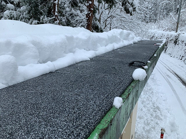 地面のコンクリートやアスファルトの下へヒーターを設置し、雪を溶かします。13.3mm幅の自己制御型ヒーターを使用しております。