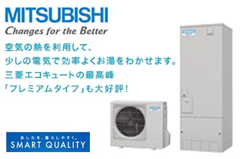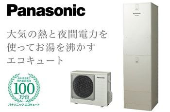 エコキュートとは、ヒートポンプという技術を使い空気中の熱でお湯を沸かす地球にやさしい給湯器です。