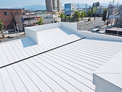 ガイナを建物の屋根、外壁に塗るだけで、太陽光線から受ける影響の約90%を反射し、夏に涼しい究極の外断熱が完成します。