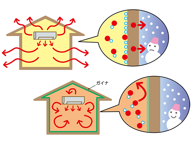 この働きにより、外部からの冷気の影響を遮り、室内の熱を外へ逃がしにくくします。