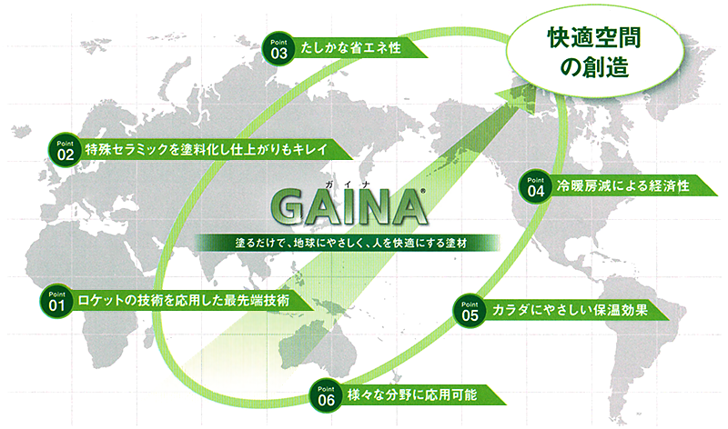 ガイナはこの宇宙技術を民間転用した、高性能な断熱塗料です。