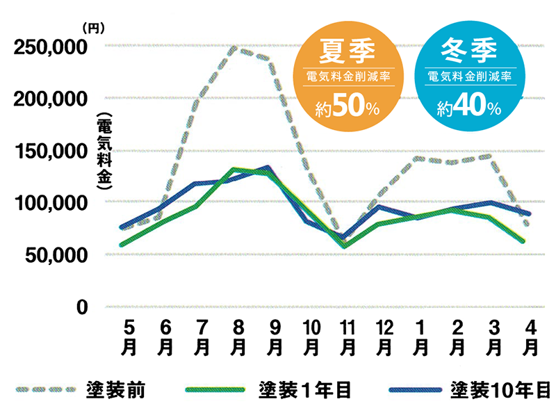 ガイナは特殊セラミックとアクリルシリコン樹脂をハイブリッドすることにより、優れた耐候性を持ち、一般塗料の2~3倍の寿命になります。