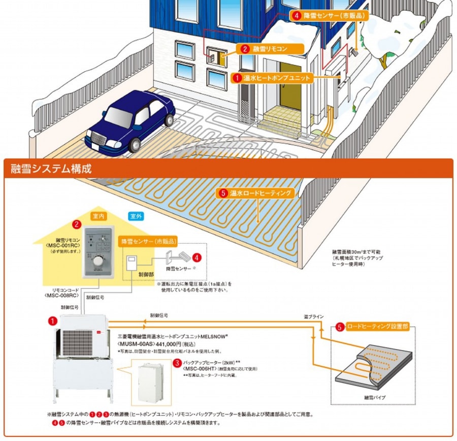 融雪面積30㎡(ヒートポンプ式温水融雪) |