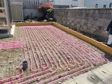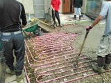 コンクリートスペーサーを使用する事により、確実にコンクリートの真ん中へ配管とワイヤーメッシュが配置され、適切な融雪能力とコンクリート強度が得られます