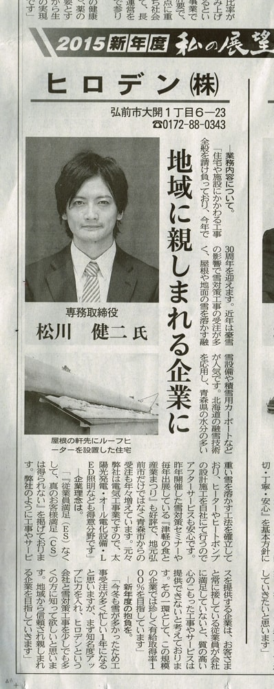 HOME > 掲載情報 ヒロデン株式会社 掲載情報 各種メディアにて掲載された、当社の記事や広告をご紹介。 新聞記事等 画像をクリックすると拡大表示されます 2001/1陸奥新報 2009/3陸奥新報 2009/3東奥日報 2010/7陸奥新報 2012/8東奥日報 2013/5東奥日報 2013/10東奥日報 2013/10東奥日報 2014/1東奥日報 2014/6陸奥新報 2014/8東奥日報 2014/9陸奥新報 2015/1帝国ニュース 2015/3東奥日報 2015/5陸奥新報 2015/5東奥日報 2015/10 陸奥新報 2015/10 東奥日報 2016/10 陸奥新報 2016/10 東奥日報 2016/12 陸奥新報 2017/06 陸奥新報 2017/08 陸奥新報 2017/11 陸奥新報 2018/05 陸奥新報 2019/04 東奥日報 2019/09 陸奥新報 2019/12 陸奥新報(1) (プレスリリース) 2019/12 陸奥新報(2) (プレスリリース) 2021/03 陸奥新報 2021/08 東奥日報 2022/03 陸奥新報 2023/04 日経新聞 (プレスリリース) 2023/04 日経新聞(オンライン) (プレスリリース) 2023/08 東奥日報 (記事リンク) 会社概要 掲載情報