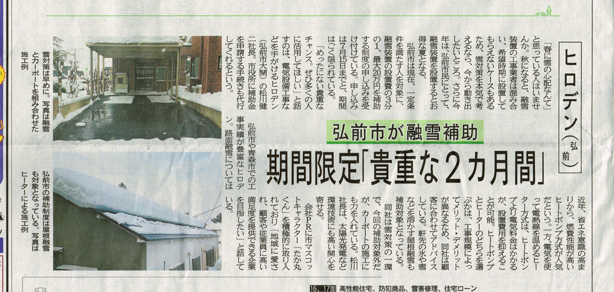 また、弘前市および青森市では、融雪工事にご利用いただける無利子の貸付制度がございます。これらの申請手続きは、弊社が無料で代行いたします。お見積り・ご相談・資料請求はすべて無料ですので、お気軽にお問い合わせください。