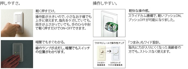 子供からご年配の方まですべての方に使いやすい大きなスイッチ。