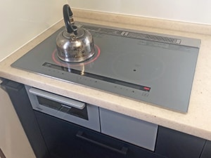 火を使わない安心の電気の調理器です。レンジフードとの連動で利便性も高く、システムキッチンとの相性は言うまでもありません。